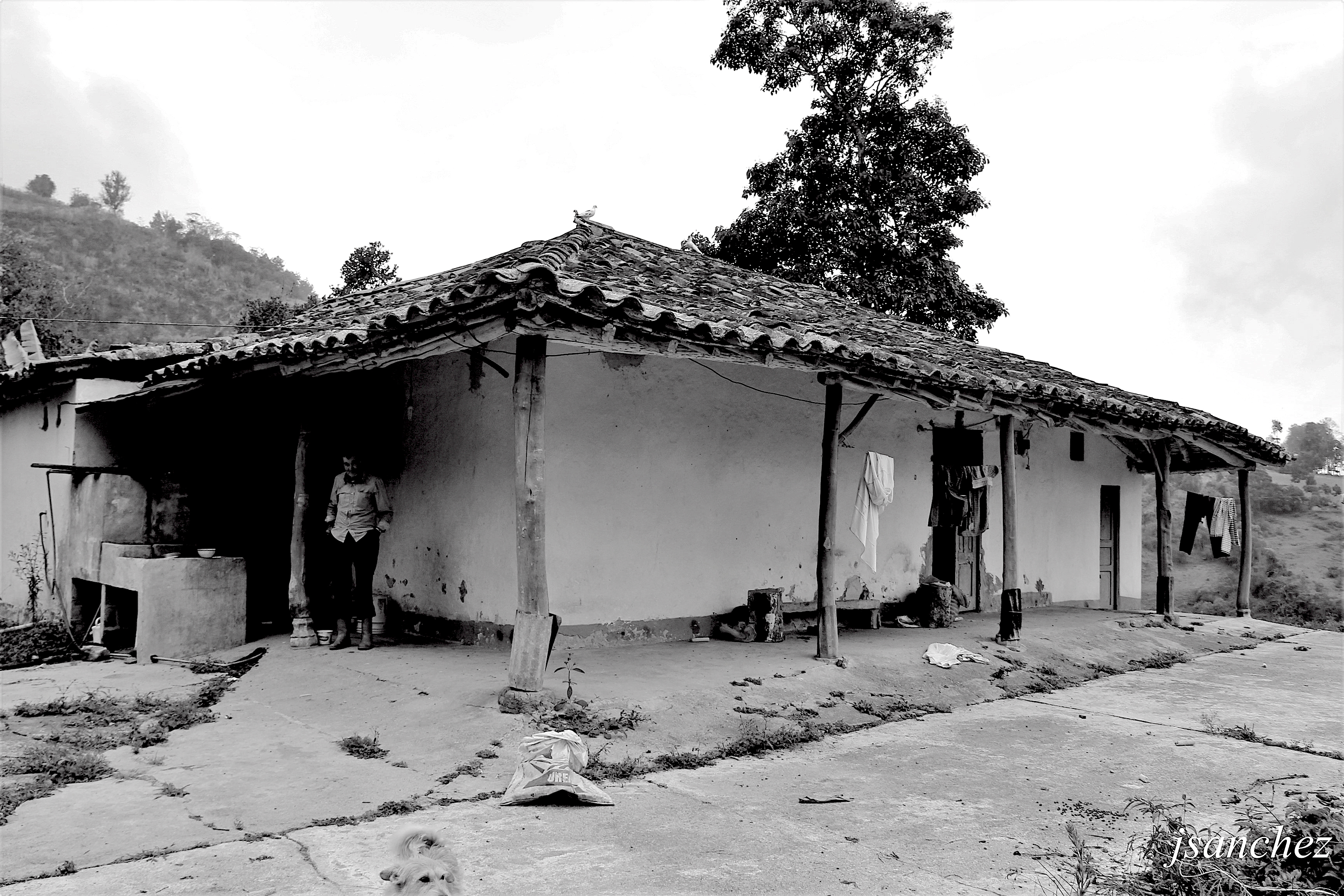 Aquí vive y pervive este solitario campesino al que su familia lo dejó para irse al pueblo en busca de mejores destinos <por ay vienen de vez en cuando a verme y darle una vuelta a la casa, pero ninguno se quiere quedar> por eso la casa grande languidece cada día, inundada de tristeza y rumiando su propia soledad.